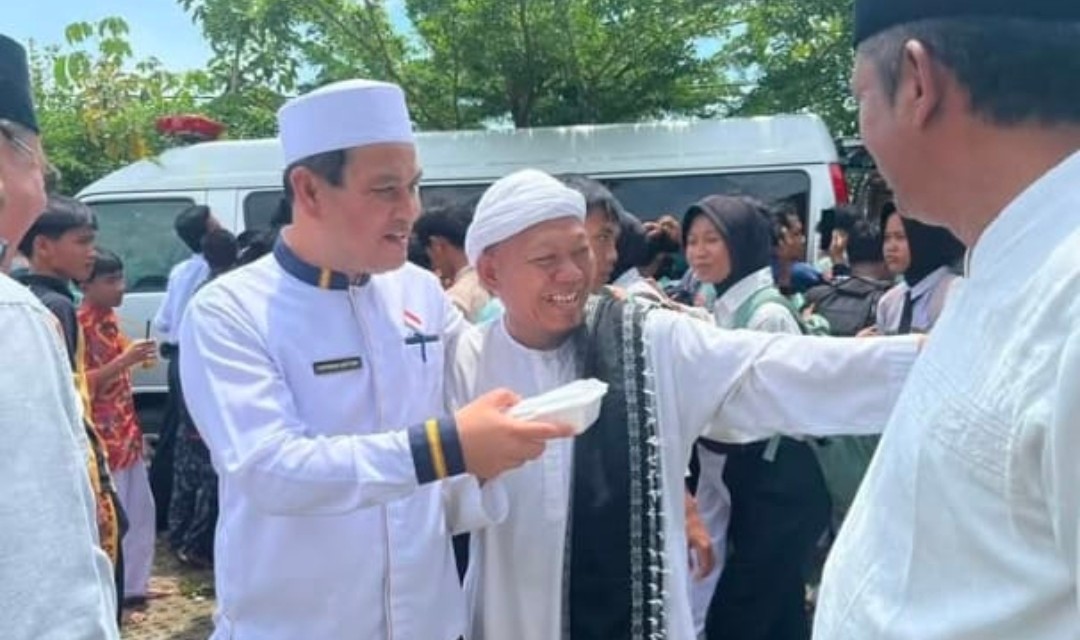 Usai mengikuti pengajian dan sholat jum’at berjemaah, Herwan turut memantau langsung mekanisme pembagian nasi bungkus dan penyaluran beras bantuan untuk masyarakat.